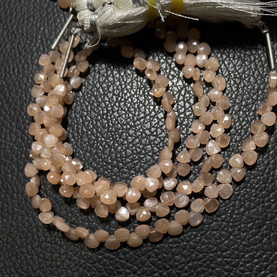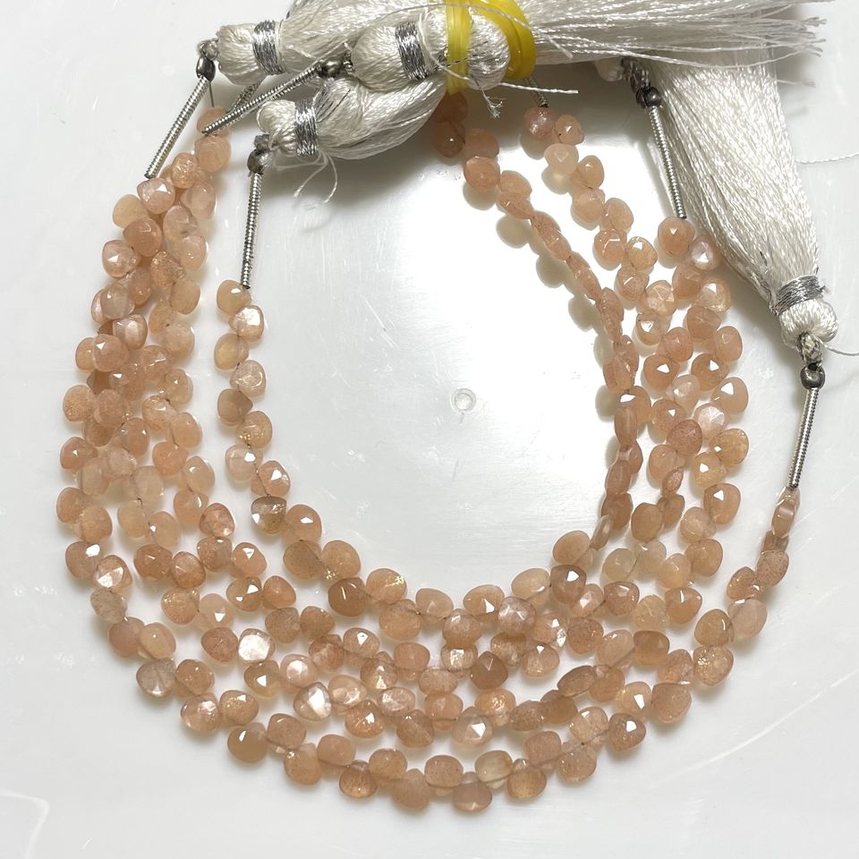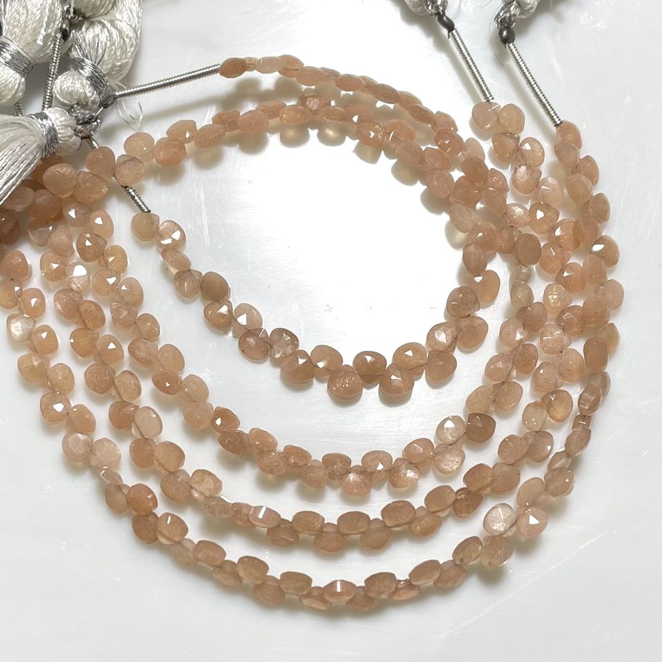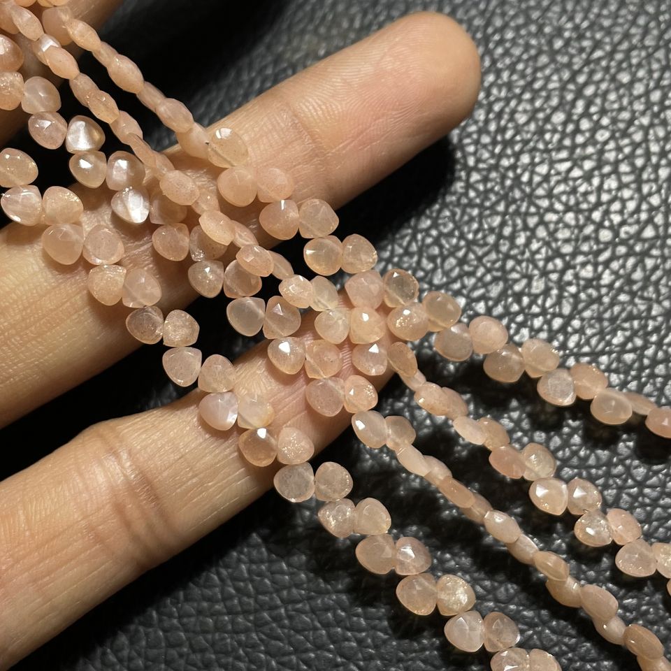 ลูกปัด briolette รูปหัวใจขนาดเล็กสีพีชมูนสโตนขนาด4-4.5มม. ลูกปัดอัญมณีขายส่งจากผู้จำหน่ายที่เชื่อถือได้