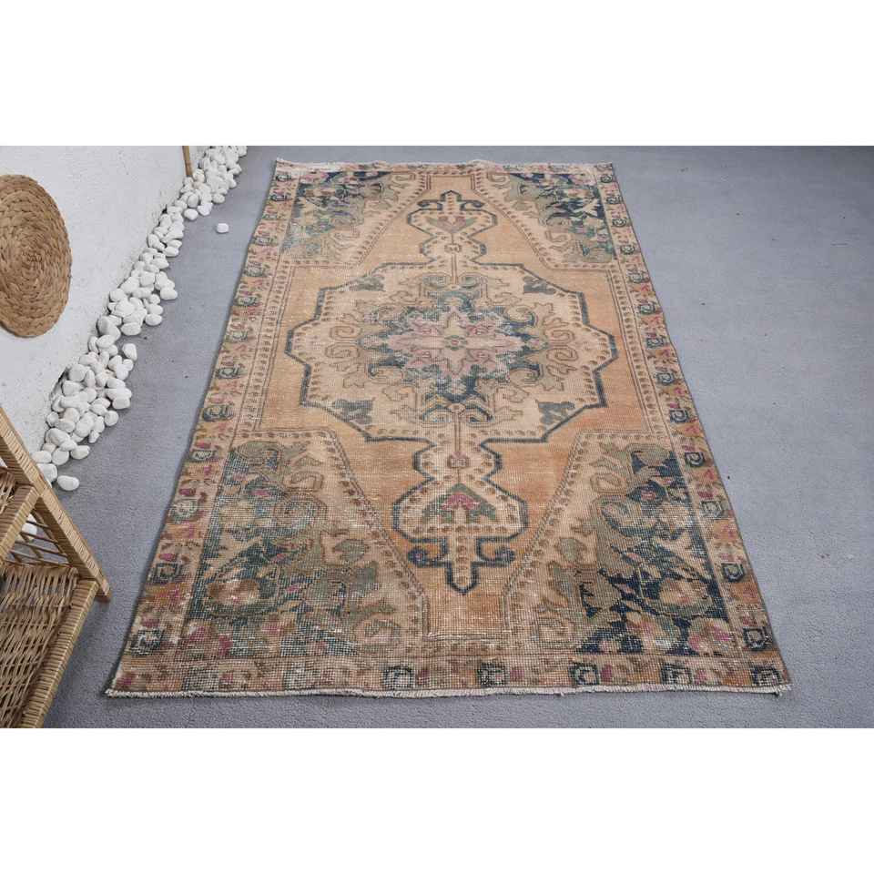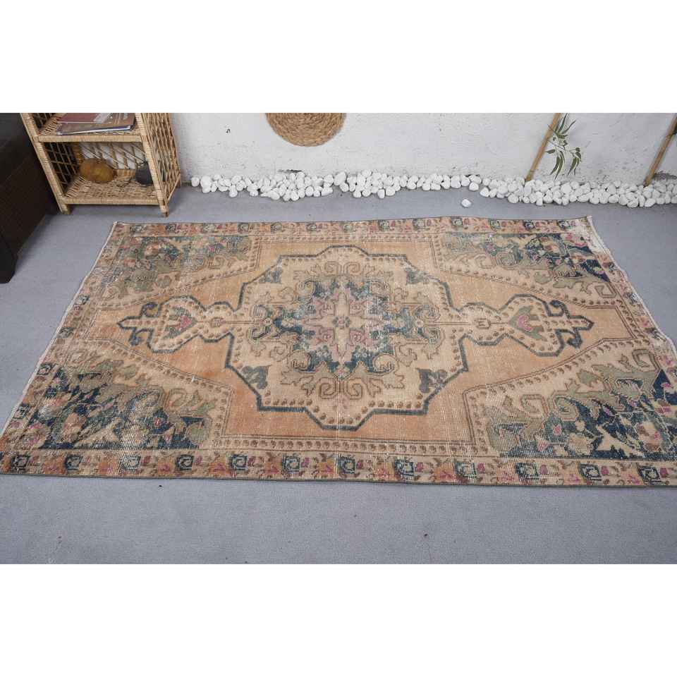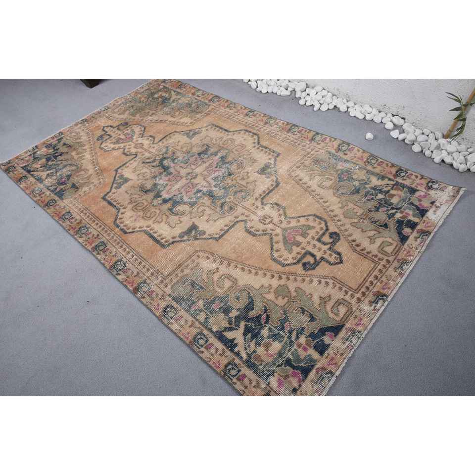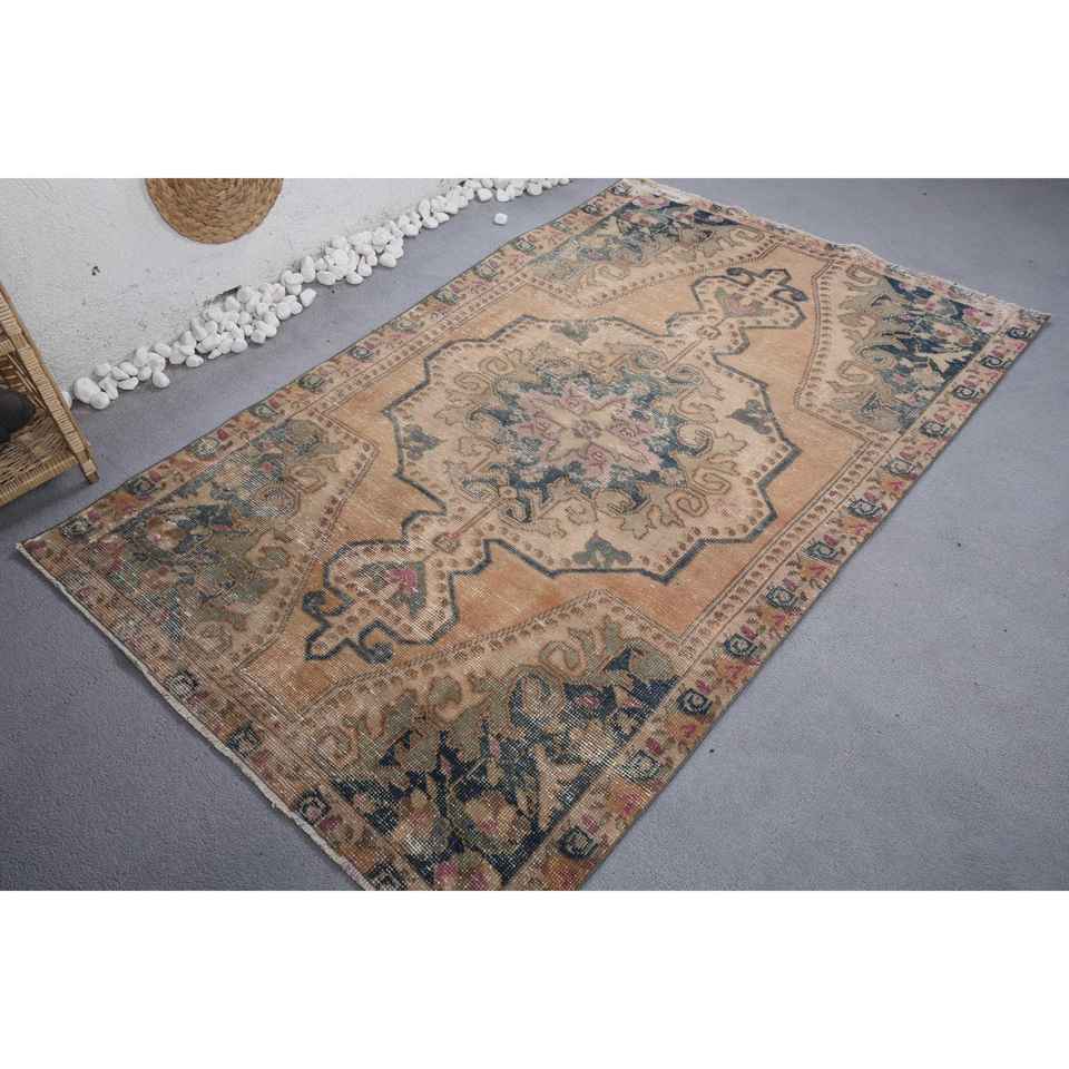 พรมวินเทจขนาด 4.4x6.9 ฟุต พรมตุรกี พรมลายดอกไม้สีเบจฟ้า