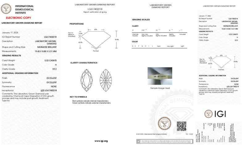 4.5 CT Marquise Cut Lab Grown Diamond EF Color IGI Certified VS Clarity Diamond Loose Lab made Diamond For Ring