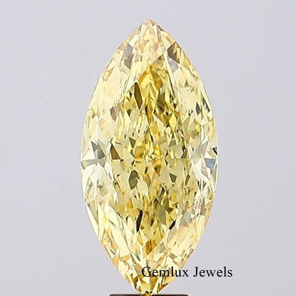เพชรทรงมาร์ควิส 4.5 กะรัต สีเหลืองสดใส ความสะอาดระดับ VS ได้รับการรับรองจาก IGI เพชรที่สร้างในห้องปฏิบัติการสำหรับแหวน