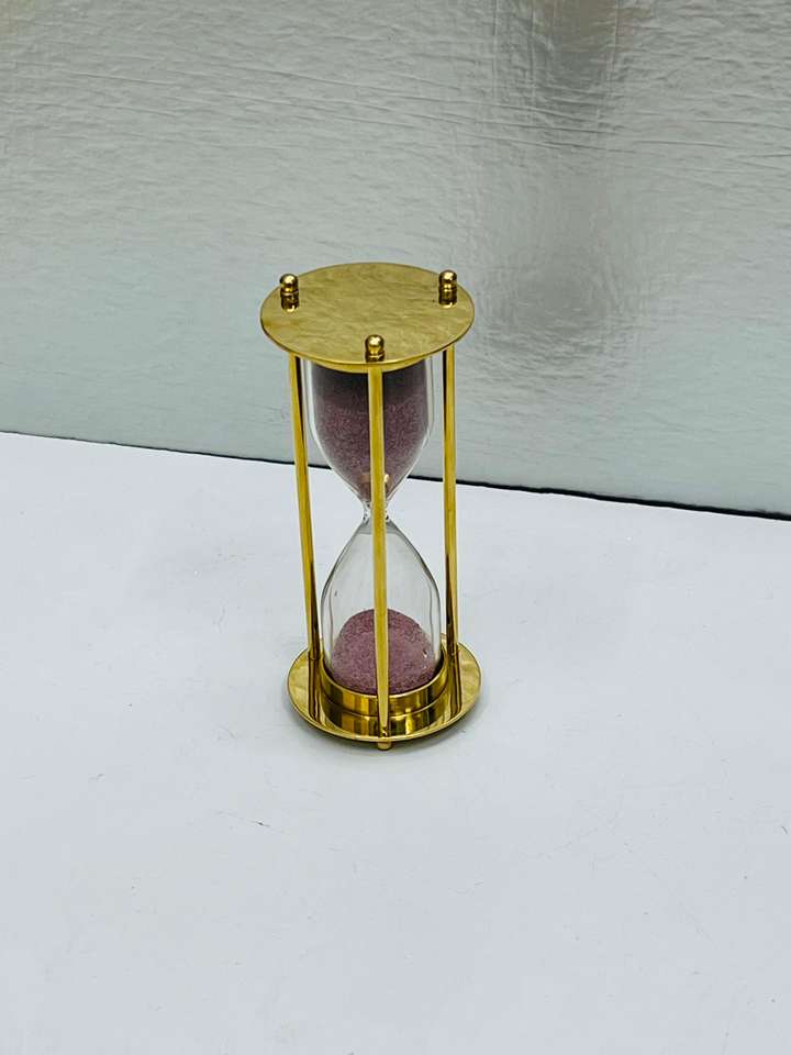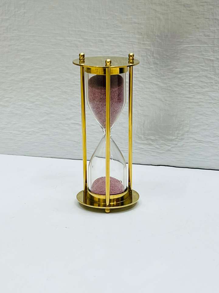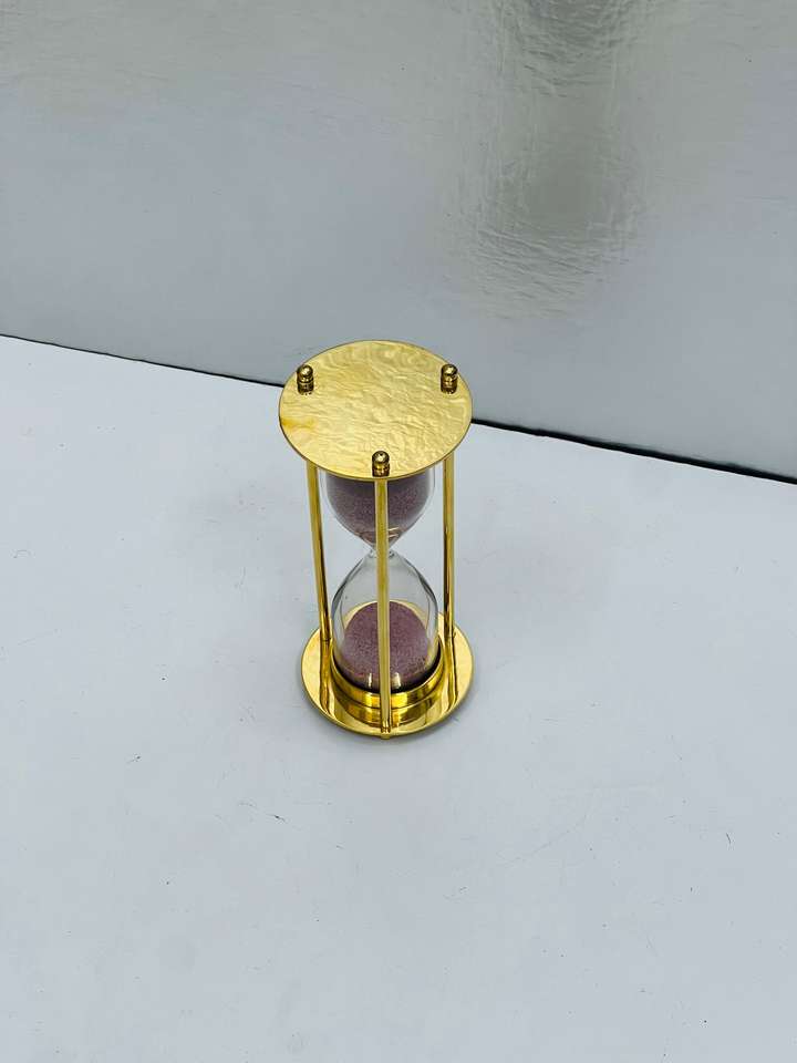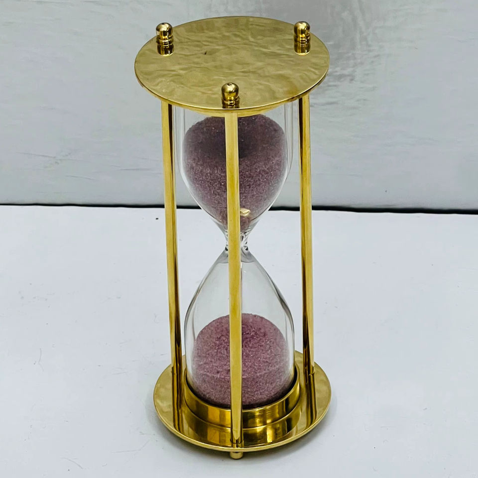นาฬิกาทรายทองเหลืองแท้ 3 มิติ ขนาด 4.5 นิ้ว | ของตกแต่งโต๊ะแบบวินเทจสำหรับงานรับปริญญา