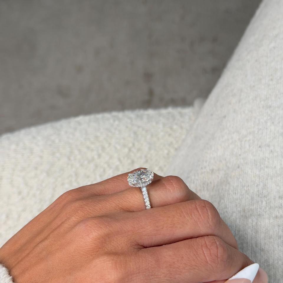 แหวนหมั้นเพชรทรงรี 4.50 กะรัต เพาะเลี้ยงในห้องปฏิบัติการ _ ดีไซน์แบบ Cathedral Hidden Halo _ รับรองโดย IGI _ แหวนขอแต่งงานทองคำขาว 14K