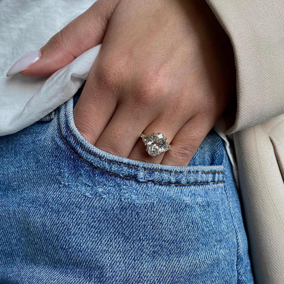 แหวนเพชรทรงรี 4.50 กะรัต เพาะเลี้ยงในห้องปฏิบัติการ แหวนทองคำขาว 18K ประดับเพชรทรงทริลเลียนด้านข้าง ได้รับการรับรองจาก IGI