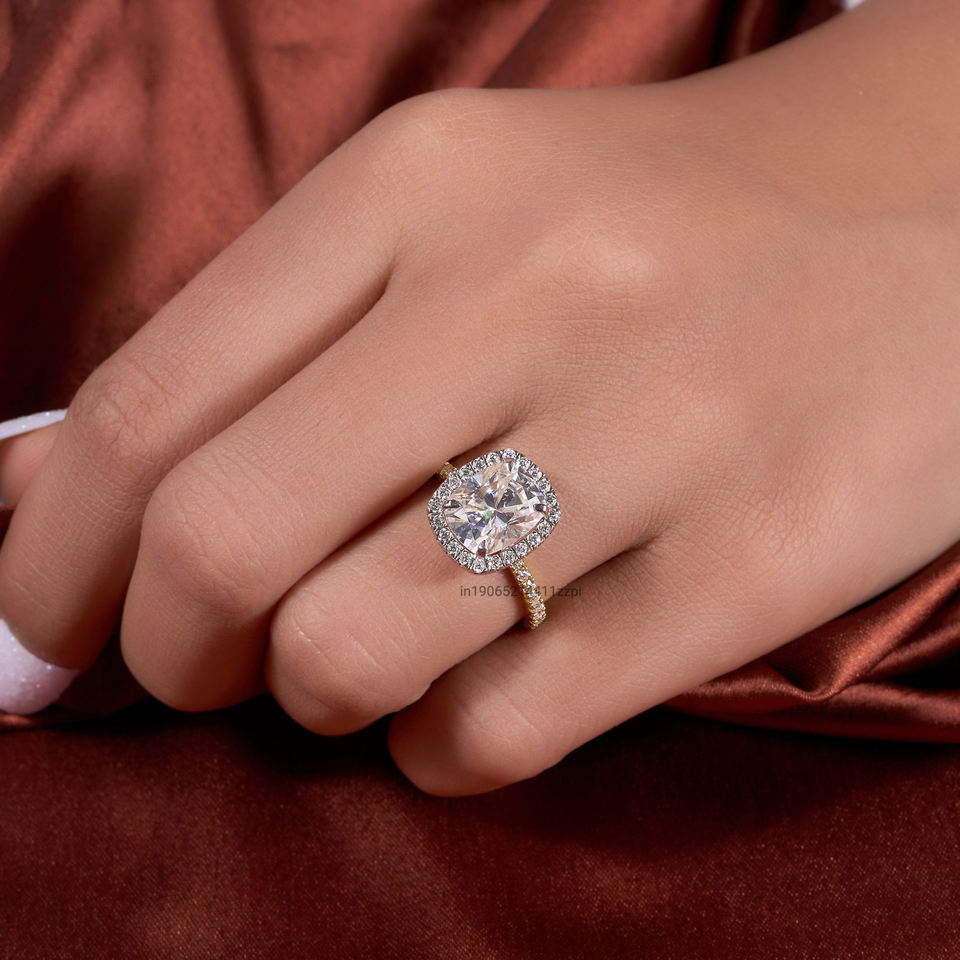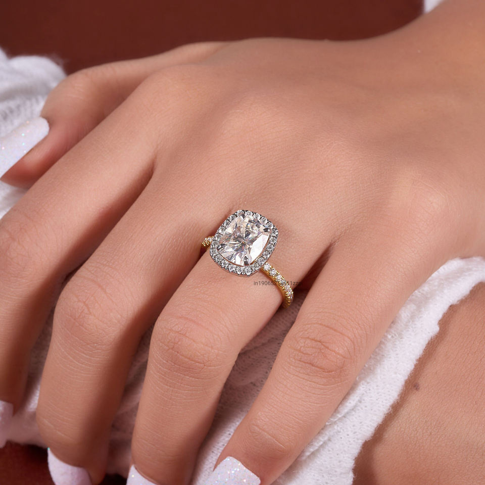 4.55 CT แหวนเพชรโมอิสซาไนท์ประดับเพชรแหวนหมั้นยาวเบาะเพชรโมอิสซาไนท์สุดหรูสำหรับเธอ