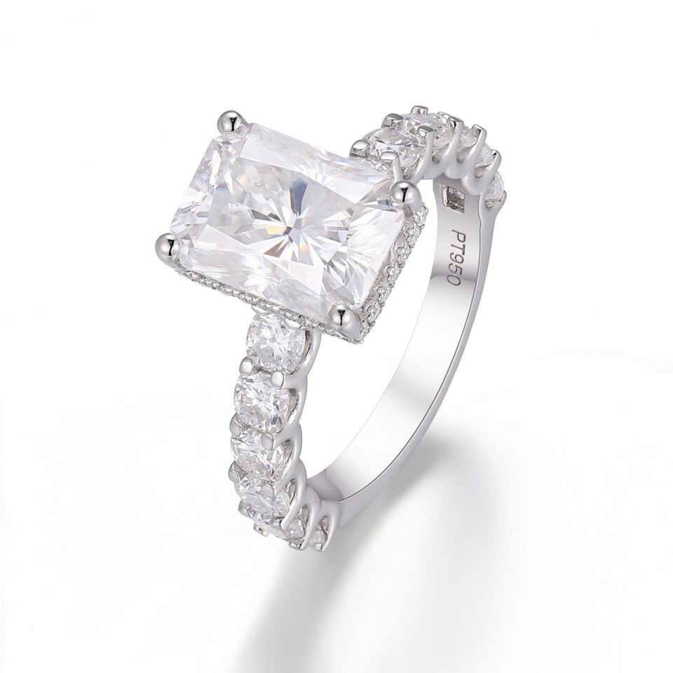 แหวนมอสซาไนต์ทรงเรเดียนต์ 4.5 กะรัต ทองคำแท้ 18k 14k 10k สีขาว เครื่องประดับชั้นดี แหวนสั่งทำ แหวนหมั้นสำหรับผู้หญิง