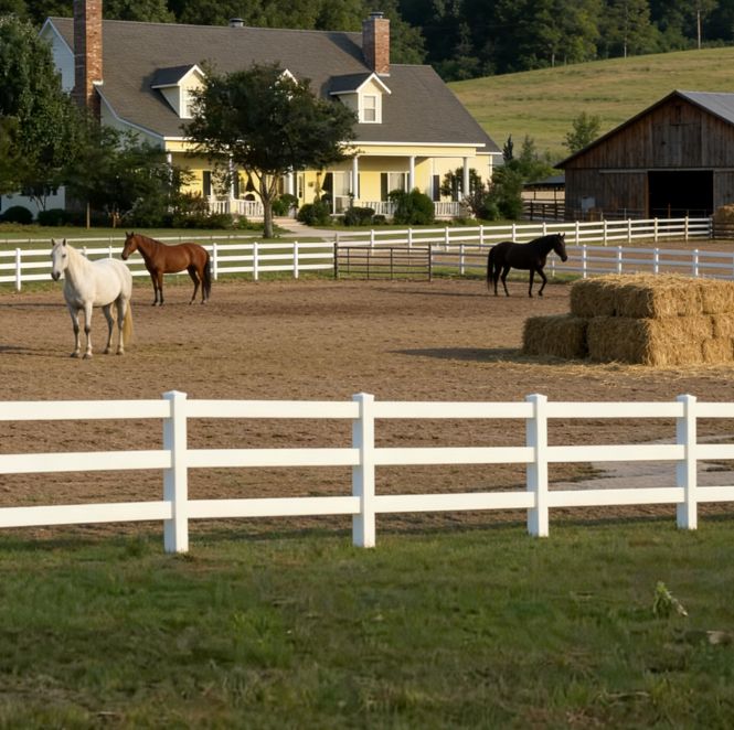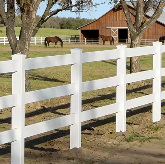 White Vinyl PVC Plastic 3 Rail Horse Fence