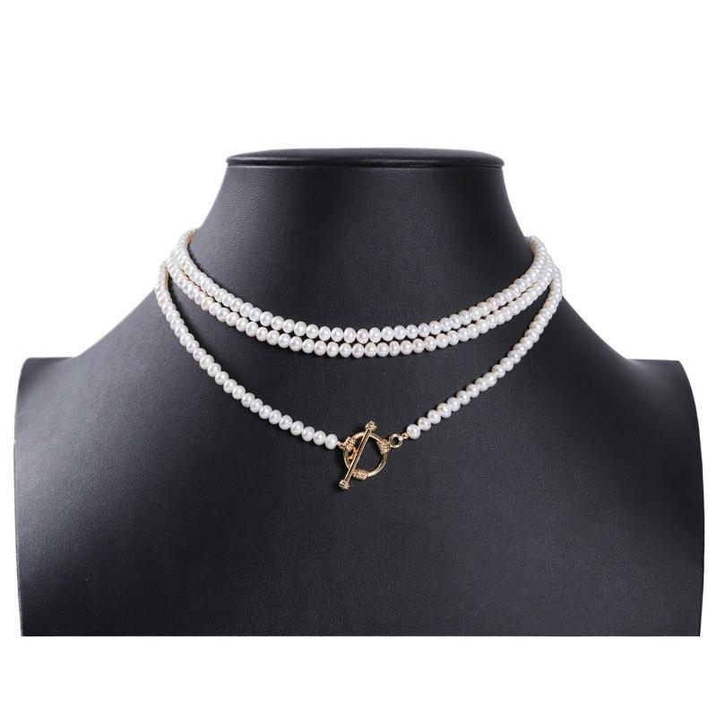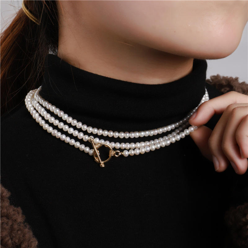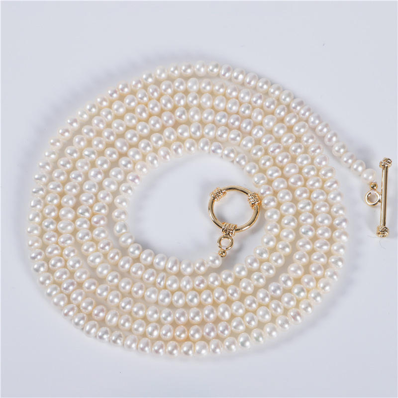 สร้อยคอมุกน้ำจืดทรงเกือบกลม ขนาด 4-5 มม. คุณภาพดี แสงเงางาม สำหรับผู้หญิง ใช้เป็นสร้อยคอเสื้อได้หลากหลาย