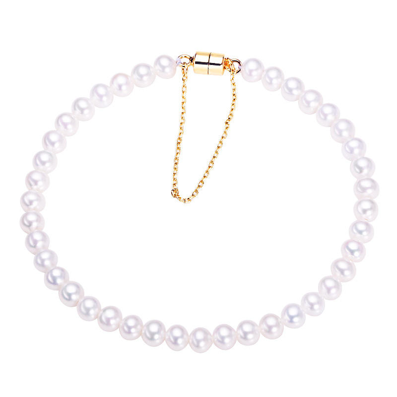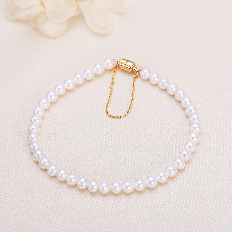 สร้อยข้อมือไข่มุกน้ำจืดจูจี้ขนาด 4-5 มม. พร้อมตัวล็อคเงินแท้ S925 สร้อยคอไข่มุกแท้สีเรียบง่าย