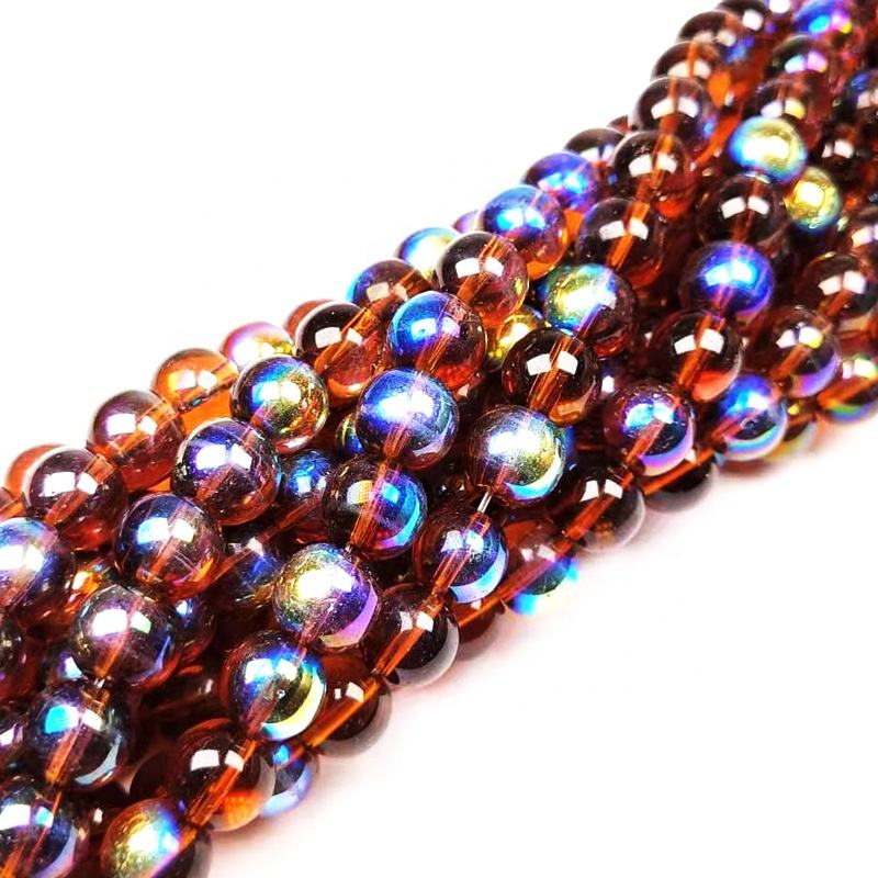ลูกปัดแก้วคริสตัลชุบสีรุ้งทรงกลม4/6/8/10มม. เครื่องประดับอัญมณี DIY