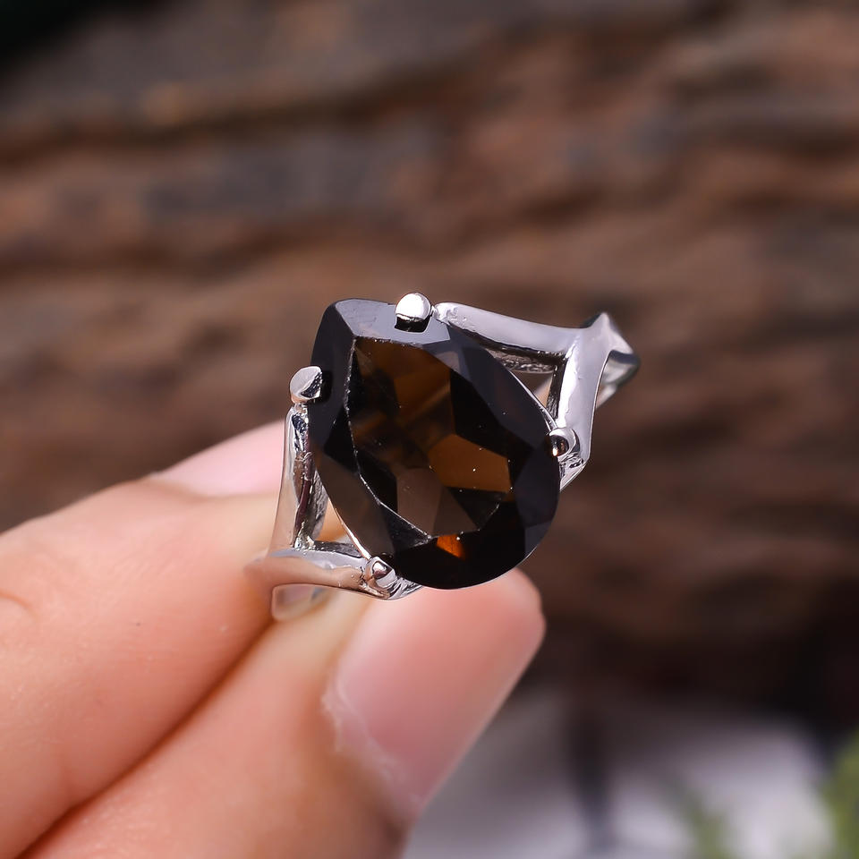 4.6กรัมธรรมชาติควอตซ์เหลี่ยมเพชรพลอยรูปร่างลูกแพร์92.5สเตอร์ลิงเงินเครื่องประดับแฮนด์เมดแหวนขายส่ง