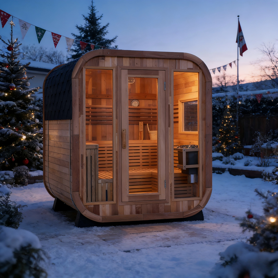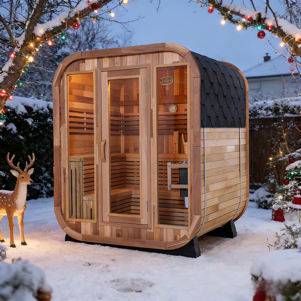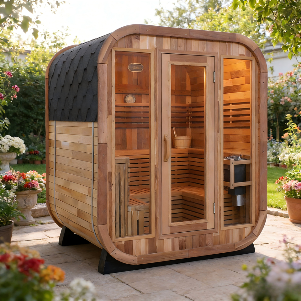 ห้องซาวน่าอบไอน้ำแบบดั้งเดิมกลางแจ้งสำหรับ 4-6 คน, ห้องซาวน่าทรงสี่เหลี่ยม, ห้องซาวน่าอบไอน้ำแบบดั้งเดิมทำจากไม้ซีดาร์แดงแบบต่อชิ้น