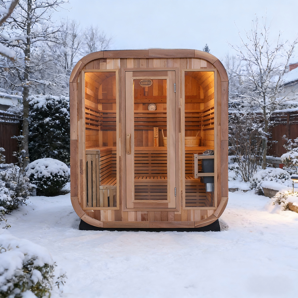 ห้องซาวน่าอบไอน้ำแบบดั้งเดิมกลางแจ้งสำหรับ 4-6 คน ทำจากไม้ซีดาร์แดงแบบประกอบชิ้นส่วน