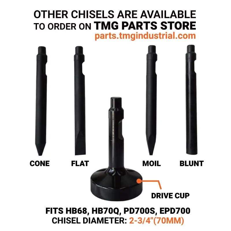 4-7 Ton Excavator/Backhoe Quick Change (Q/C) Hydraulic Breaker 2-3/4\" Mill Point Chisel 838 J Impact Energy for Lugging