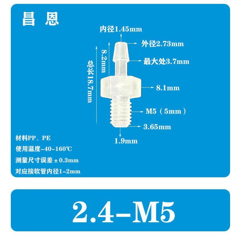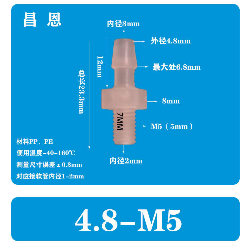 ข้อต่อตรงพลาสติก PP ทนต่อการกัดกร่อน4.8-M5เกลียวภายนอก M5/M6พร้อมข้อต่อสุขาภิบาล M10อุณหภูมิสูง
