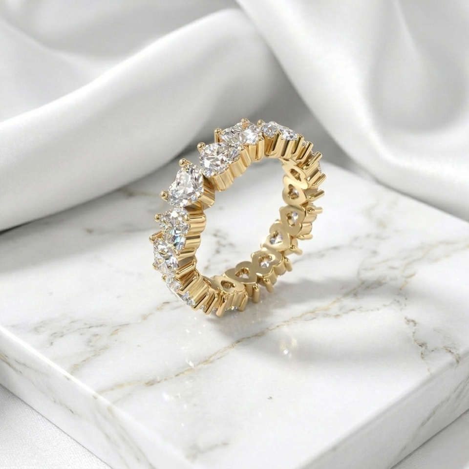 แหวนเพชรทรงหัวใจ 4.80 กะรัต ชุบทอง 9K เพชรเพาะเลี้ยงสี E ตัวเรือนแบบ Prong Set รับรองโดย IGI