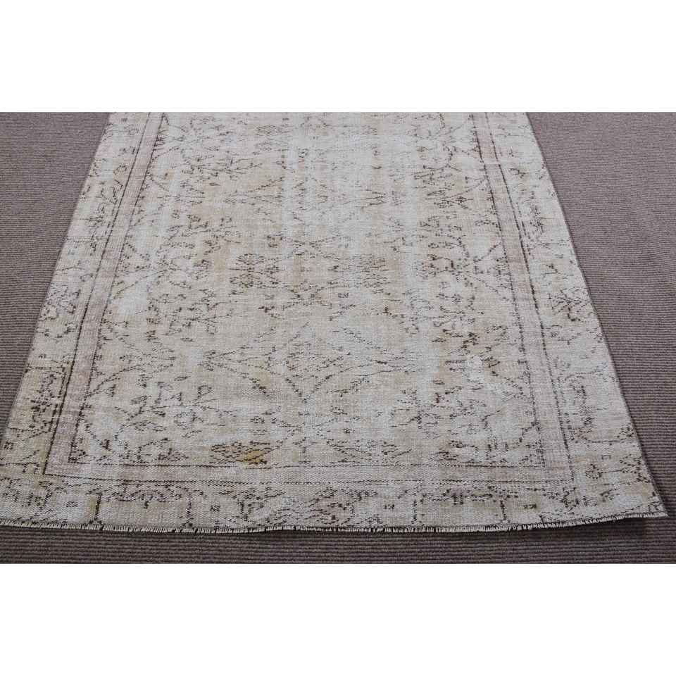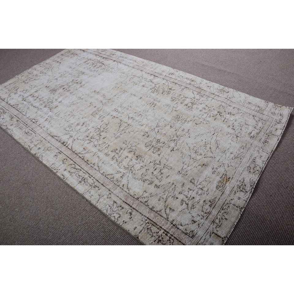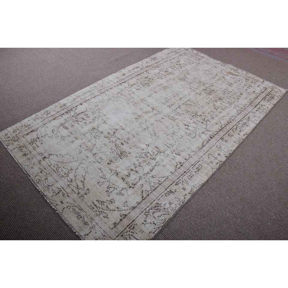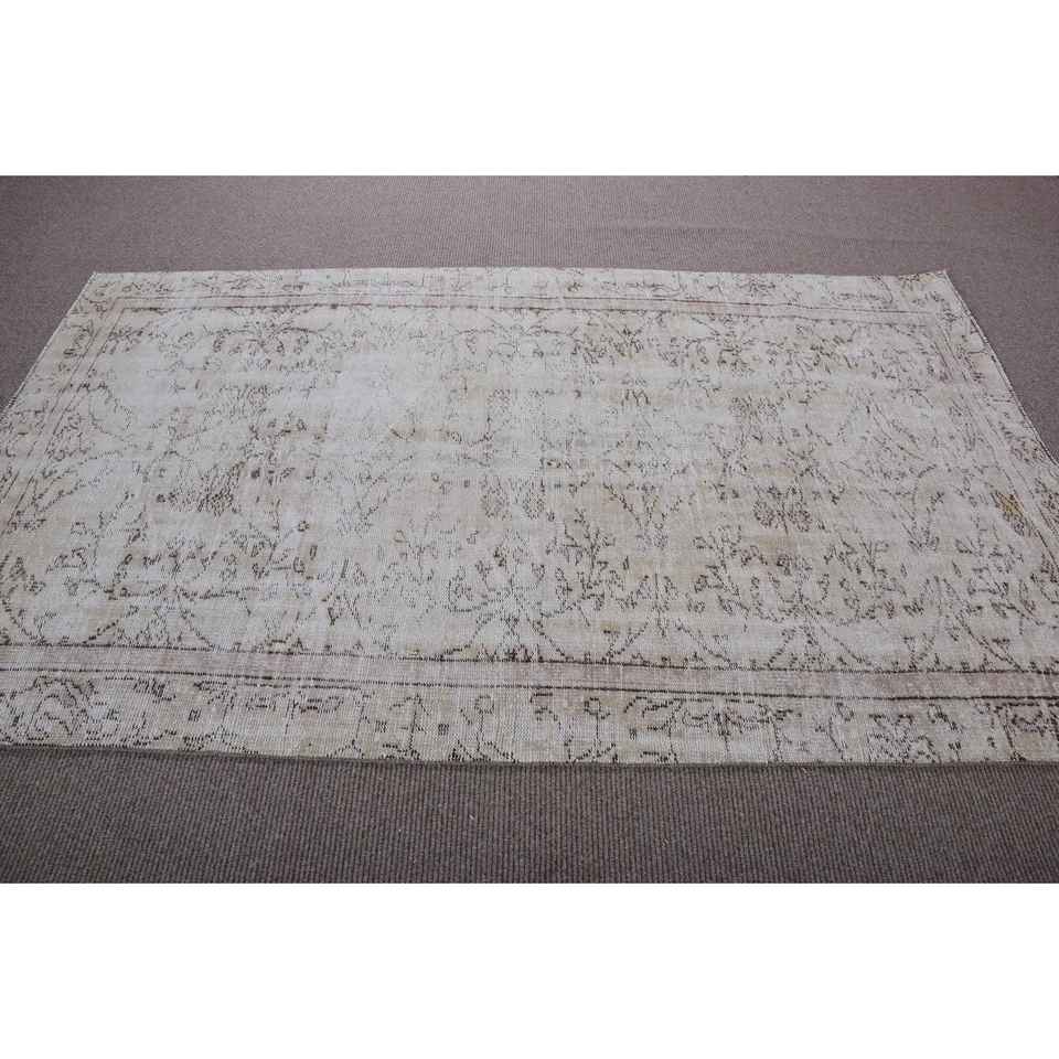 พรมวินเทจขนาด 4.8x7.9 ฟุต สีขาว พรมขนสัตว์โมร็อกโกตุรกี