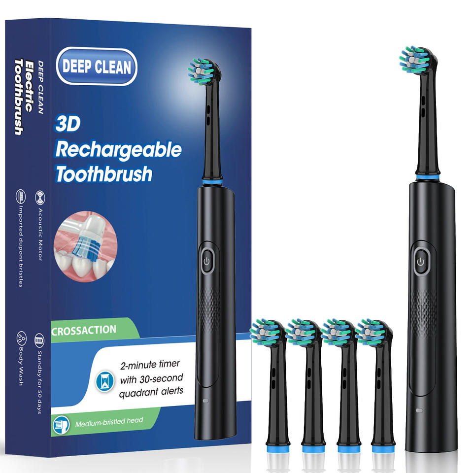 หัวแปรง 4 หัว แปรงสีฟันไฟฟ้าแบบหมุนได้ 3 มิติ หัวแปรงทรงกลมแบบชาร์จไฟได้
