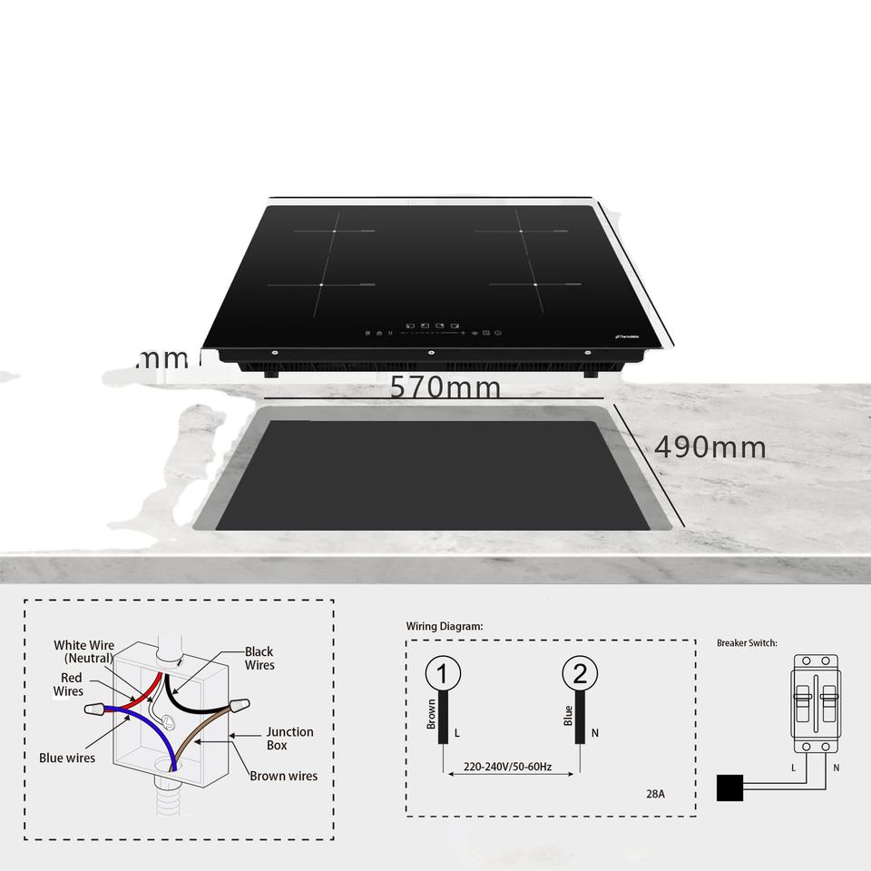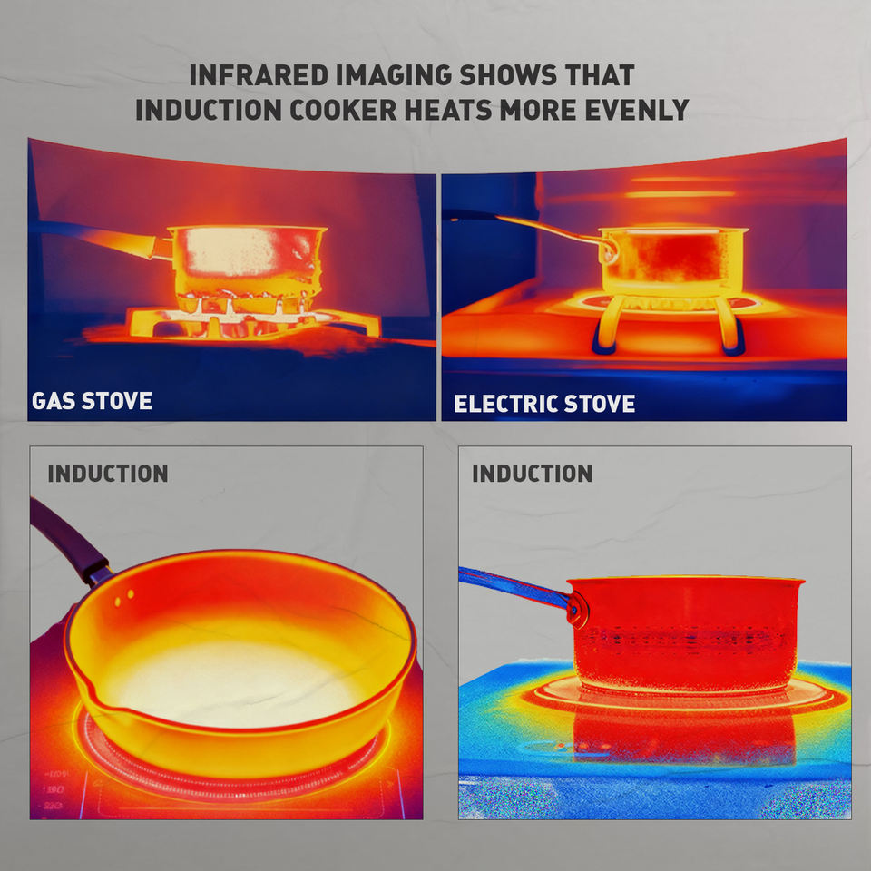 เตาแม่เหล็กไฟฟ้า 4 หัวเตา พร้อมระดับความร้อน 9 ระดับ และตัวควบคุมแบบสัมผัสพร้อมตัวตั้งเวลา