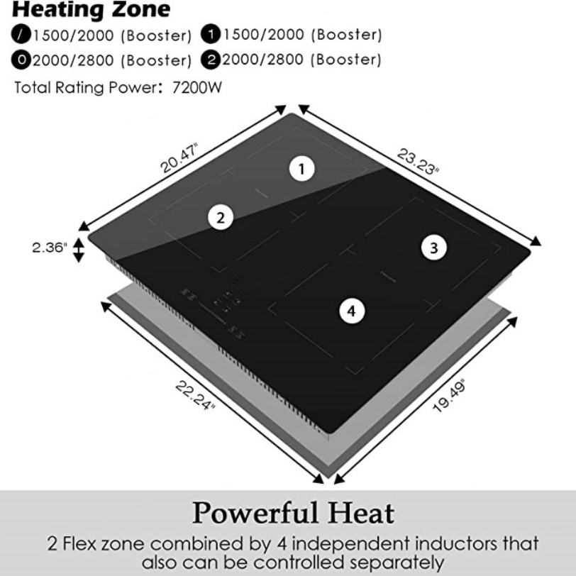 เตาแม่เหล็กไฟฟ้า 4 หัวเตา ขนาด 24 นิ้ว 7200 วัตต์