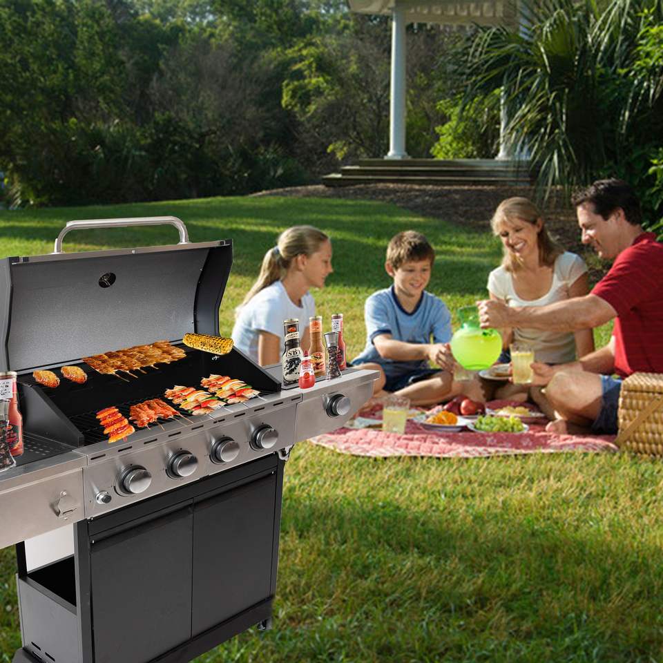 4-Burner Stainless Steel Propane Gas Grill with Side Burner Thermometer for Outdoor Camping BBQ Outdoor BBQ Camping