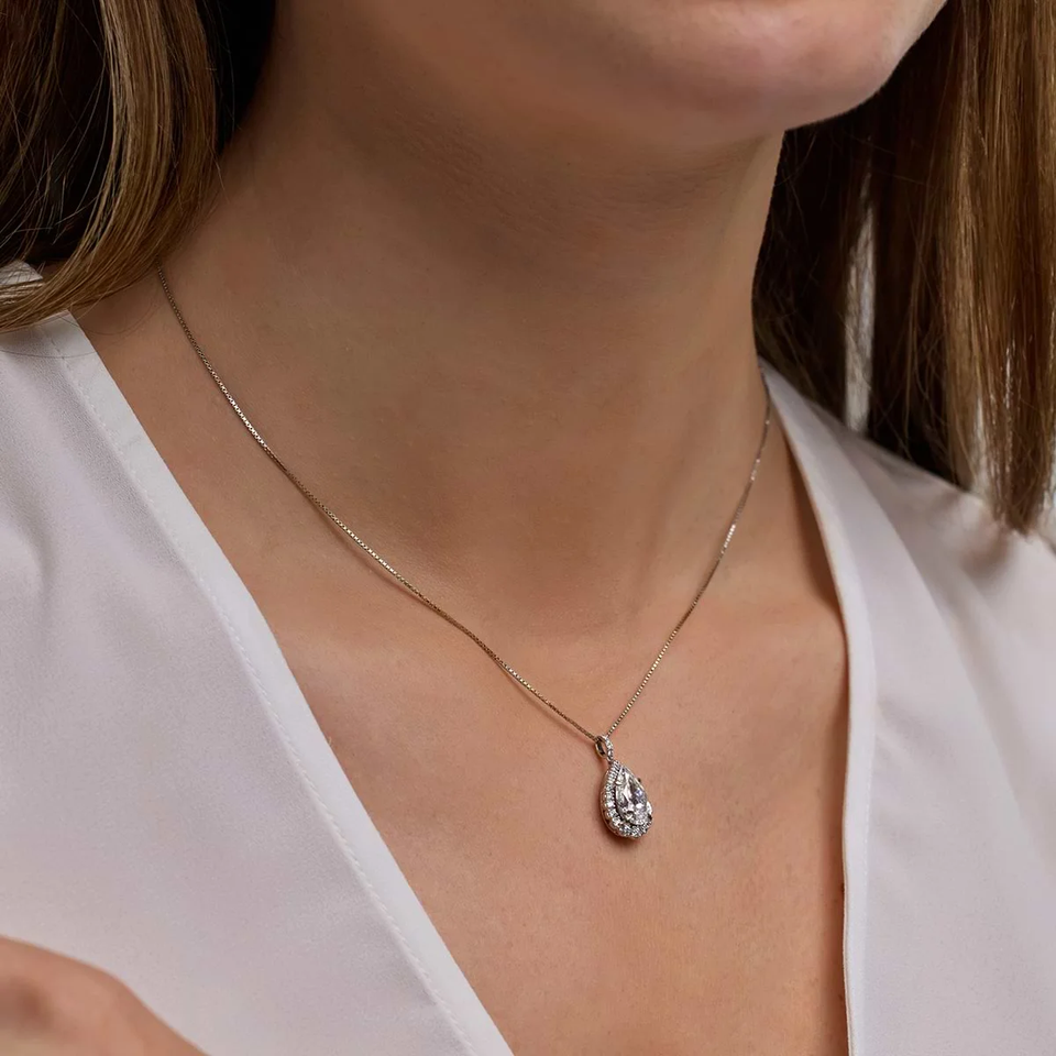จี้เพชรทรงลูกแพร์ 4 กะรัต พร้อมสร้อยคอปรับได้ ดีไซน์หรูหรา ประกายระยิบระยับ ของขวัญเครื่องประดับชั้นดีสำหรับผู้หญิง