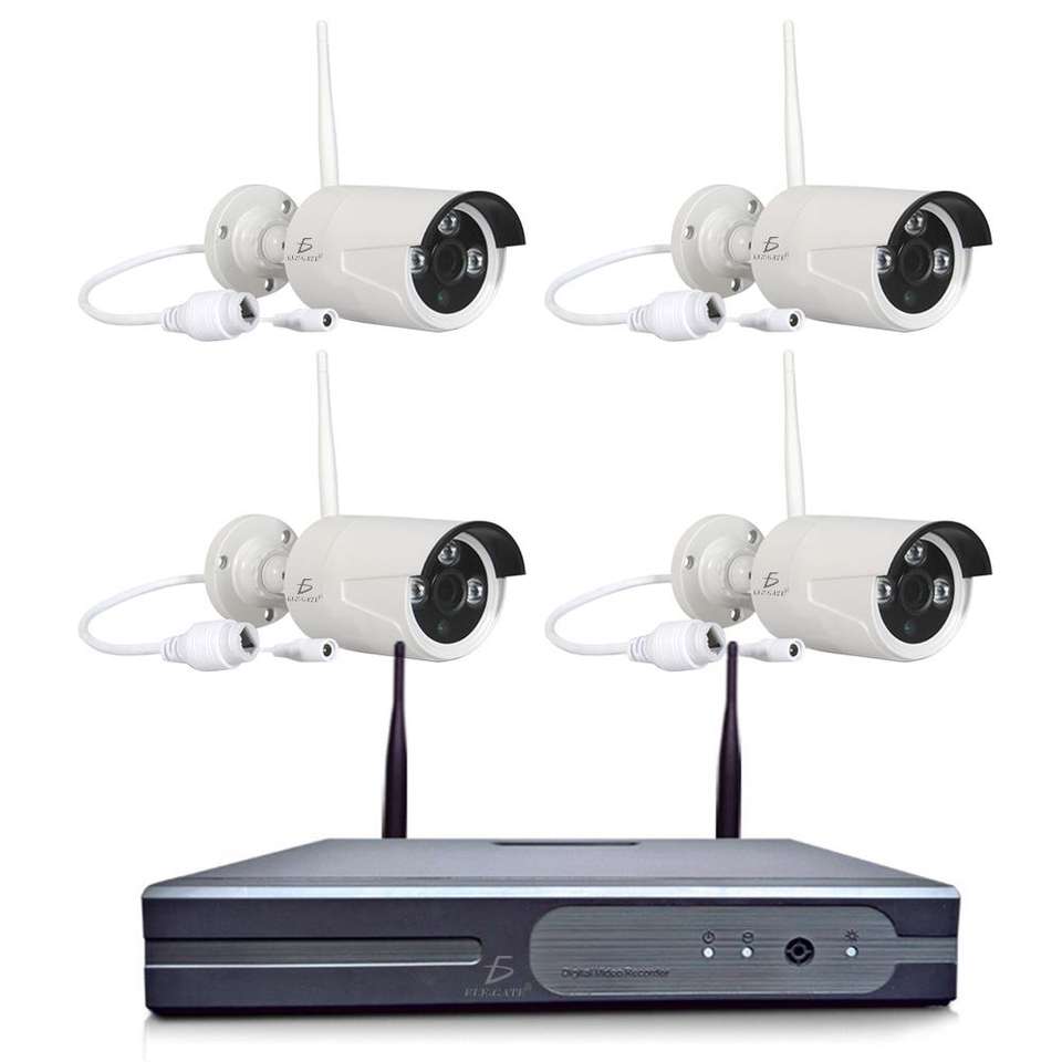 ชุดกล้องไร้สาย 4 ตัว พร้อมเครื่องบันทึกภาพสำหรับการรักษาความปลอดภัยภายนอกอาคาร