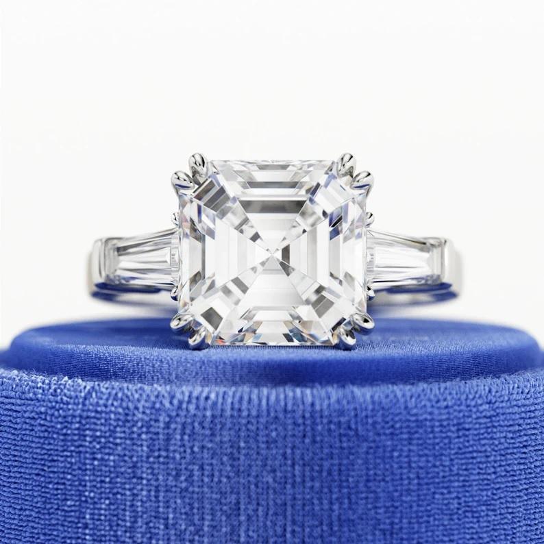 4 Carat Asscher Cut Lab Grown Diamond Ring Three Stone Band Three Stone Engagement Ring 4 Carat Diamond for Jewelry