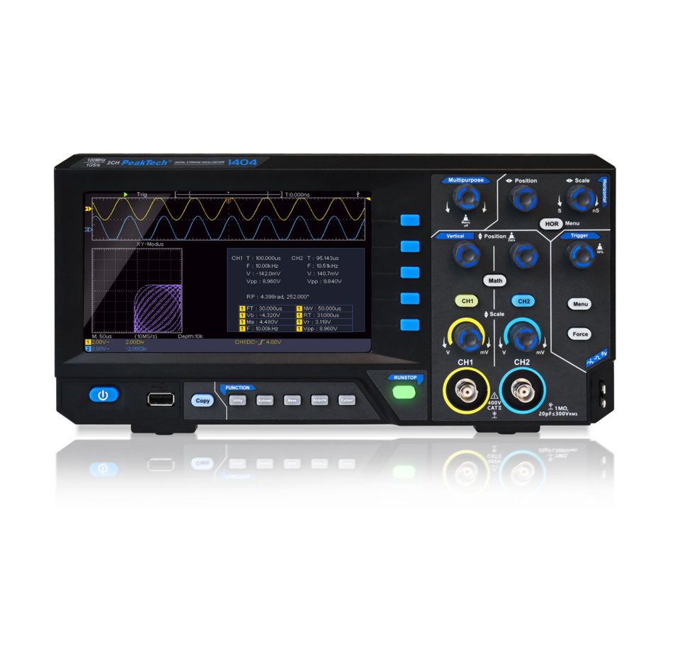 ออสซิลโลสโคปแบบดิจิตอล 4 ช่องสัญญาณ แบนด์วิดท์ 150MHz 1GSa พร้อมฟังก์ชัน FFT และการถ่ายโอนข้อมูลผ่าน USB สำหรับใช้งานในอุตสาหกรรม