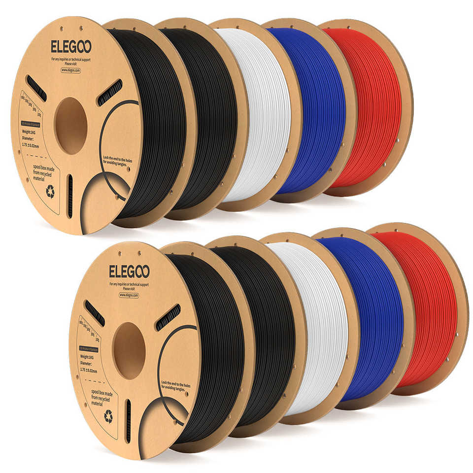 เส้นพลาสติก PLA ELEGOO 4 สี น้ำหนัก 10 กก. เส้นผ่านศูนย์กลาง 1.75 มม. ความคลาดเคลื่อน 0.02 มม. สำหรับเครื่องพิมพ์ 3 มิติแบบ FDM สั่งซื้อขั้นต่ำ 5 กก.