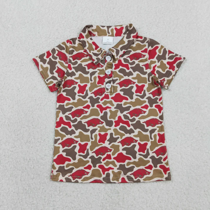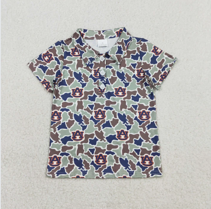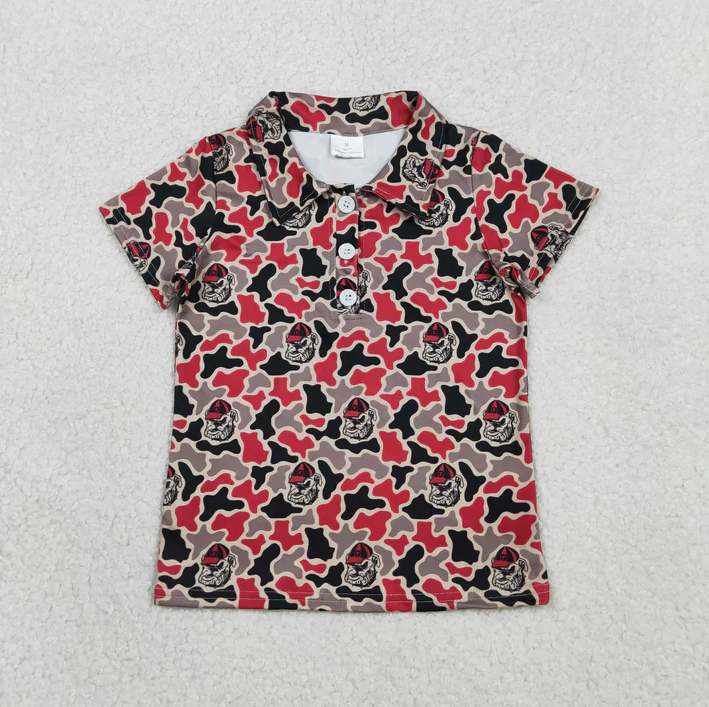 เสื้อโปโลเด็กผู้ชายแขนสั้นลายพรางใต้ 4 สี สำหรับพี่น้อง ติดกระดุม
