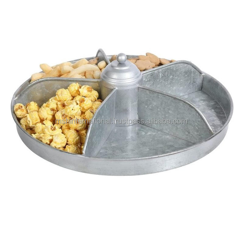 4 Compartments Silver Rectangular Galvanized Metal Food Storage Serving BoxVintage Storage Organizer Farmhouse Kitchen Use