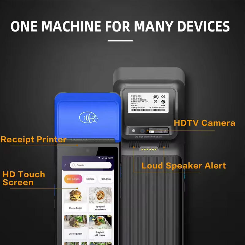 ระบบ POS แบบพกพาสำหรับร้านค้าปลีก4แกนระบบ POS แบบไร้สัมผัสระบบ POS พร้อมเครื่องพิมพ์
