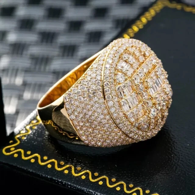 4 CT Baguette แท้ Moissanite Cluster ของผู้ชาย pinky Ring 14K สีเหลืองทองชุบ
