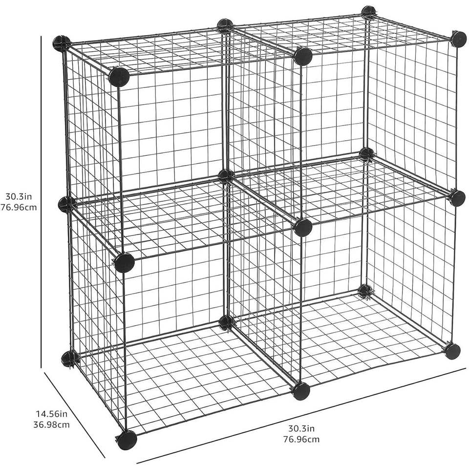ตู้เก็บของแบบตะแกรงลวด 4 ช่อง ประกอบง่าย ขนาด 14x14x14 นิ้ว สีดำ ระบบจัดเก็บแบบซ้อนได้ ประหยัดพื้นที่