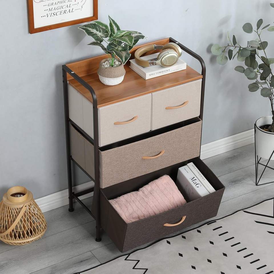4 Drawer Fabric Chest For Living Room or Bed Room Wooden Organizer Stand for Home Living Room Space Essential for Sell