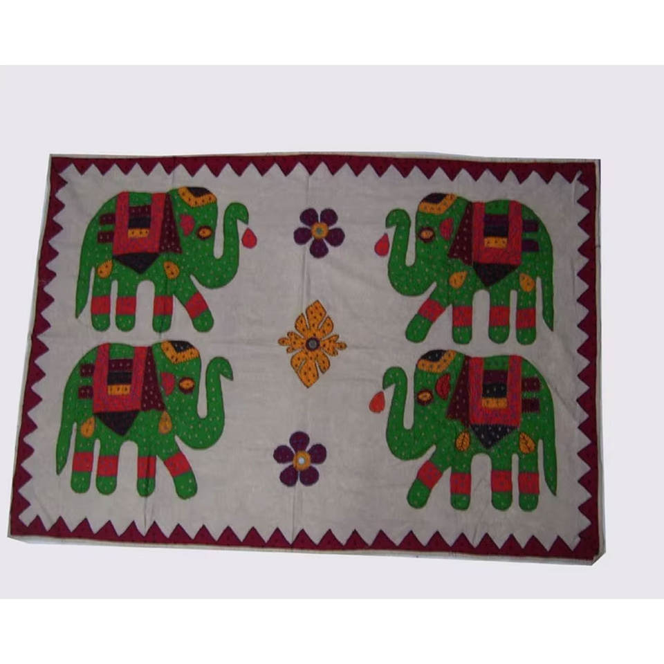 ผ้าปูโต๊ะรูปช้าง 4 ตัว ลายถักแบบดั้งเดิมของอินเดีย ลายเรขาคณิต ผลิตจากผ้าฝ้าย 100% เป็นมิตรกับสิ่งแวดล้อม สำหรับใช้ภายในบ้าน
