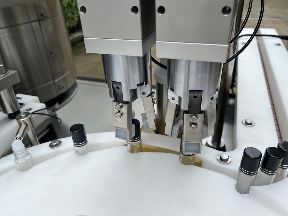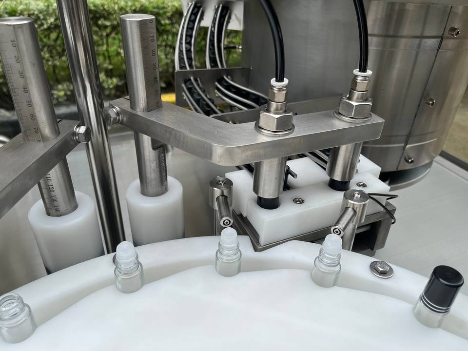 เครื่องบรรจุและปิดฝาขวดและหลอดแบบอัตโนมัติ 4 หัว แบบปั๊มกลไก สำหรับบรรจุของเหลว ปริมาณ 5-200 มล.