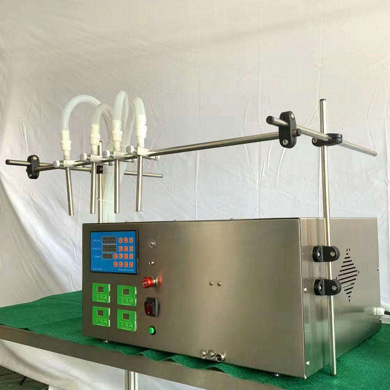 เครื่องบรรจุของเหลวแบบกึ่งอัตโนมัติ 4 หัวปั๊มแบบเพอริสตัลติก สีขาว ใช้ไฟฟ้า สำหรับขวดสบู่ นม น้ำหอม 220V ความแม่นยำสูง