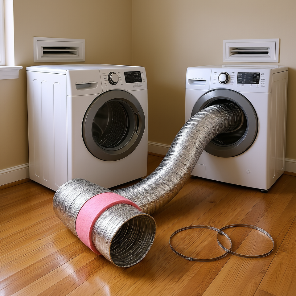 ท่อระบายอากาศแบบยืดหยุ่นหุ้มฉนวน 4 นิ้ว ยาว 25 ฟุต พร้อมตัวหนีบสำหรับระบบ HVAC