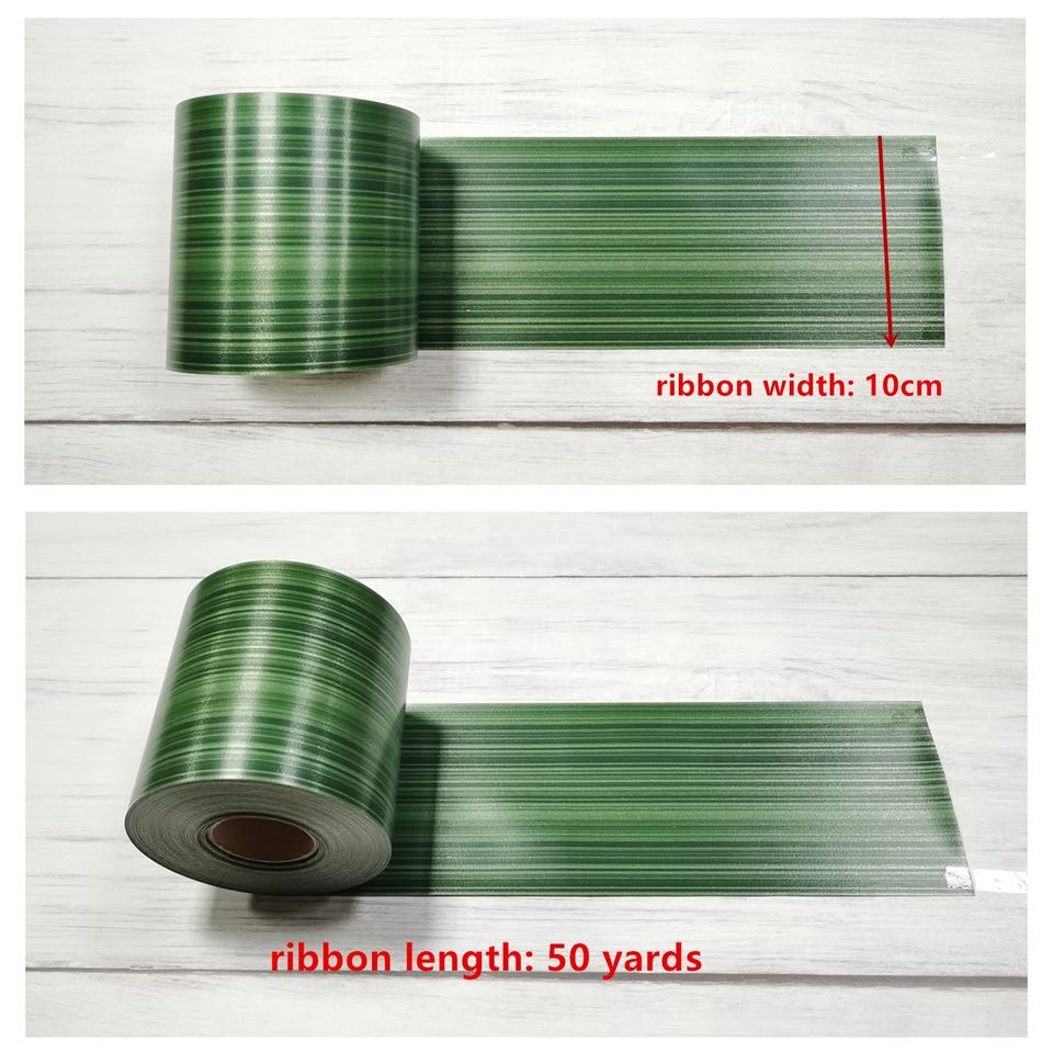 ริบบิ้นผ้าซาตินลายใบไม้สีเขียว4นิ้วริบบิ้นลายดอกไม้กันน้ำ