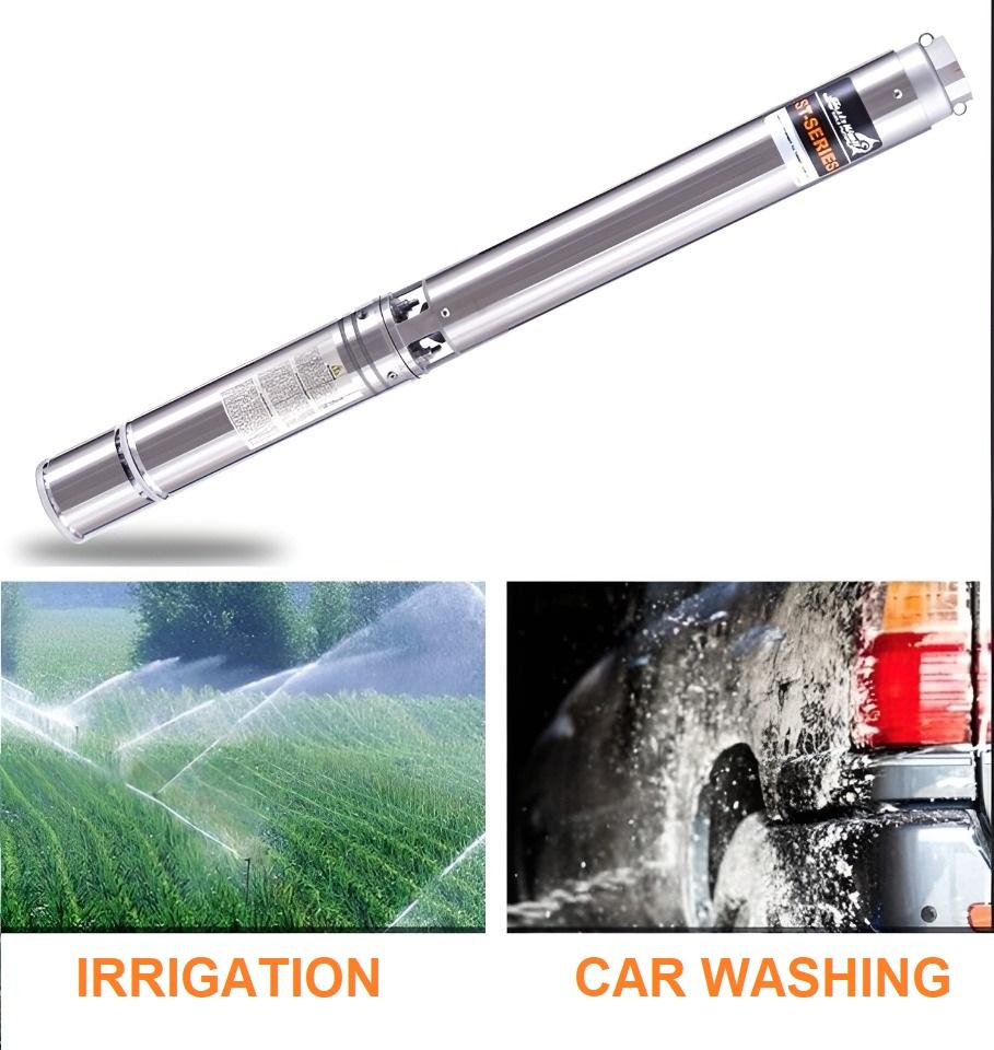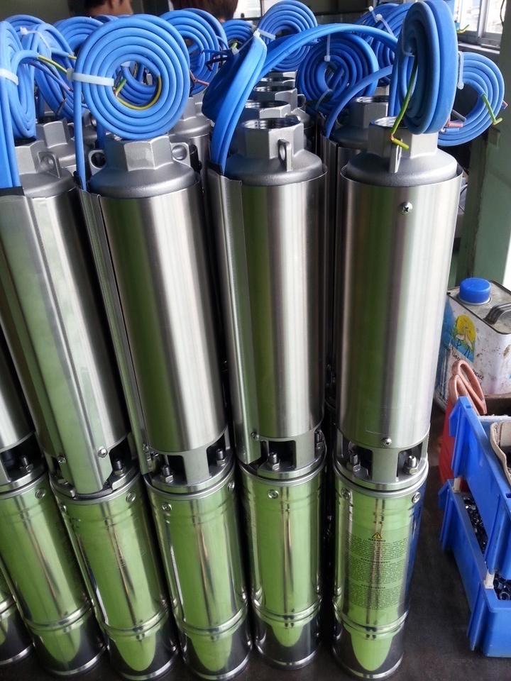 ปั๊มจุ่มใต้น้ำหลายระดับแรงดันสูง ขนาด 4 นิ้ว สำหรับบ่อน้ำลึก วัสดุสแตนเลส บรรจุเรซิ่น 220V 380V 1 แรงม้า OEM 0.75 กิโลวัตต์ ใบพัดพลาสติก