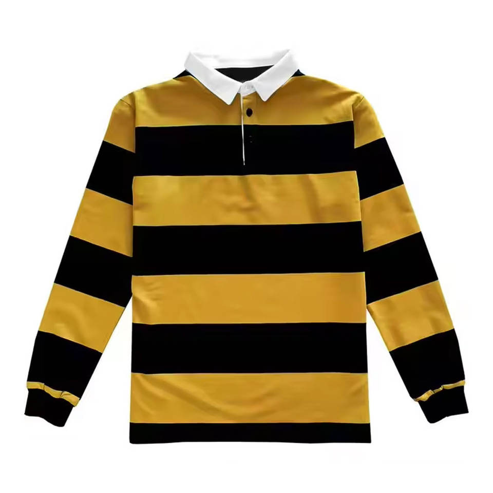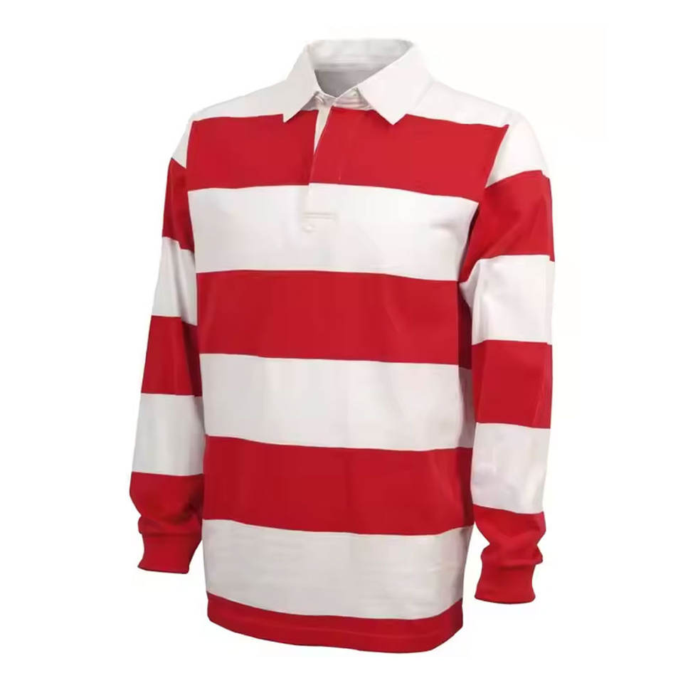 เสื้อรักบี้แขนยาวแบบคลาสสิก 4 นิ้ว ลายทางเย็บติดด้านหน้า สำหรับผู้ชาย ผ้าฝ้ายเนื้อหนา ทนทาน