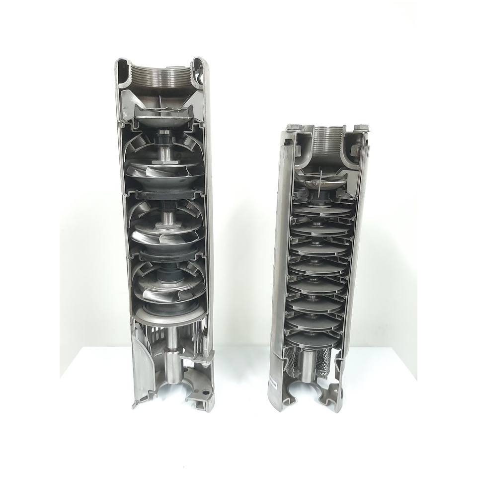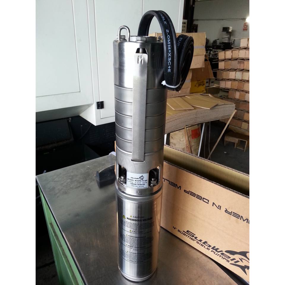 ปั๊มน้ำไฟฟ้าแบบจุ่มใต้น้ำหลายขั้นตอน ขนาด 4 นิ้ว ผลิตจากสแตนเลสทั้งตัว สำหรับงานชลประทานและบ่อบาดาล กำลัง 0.5-10 แรงม้า