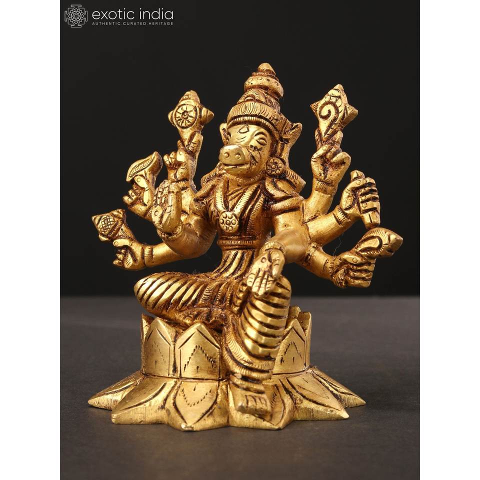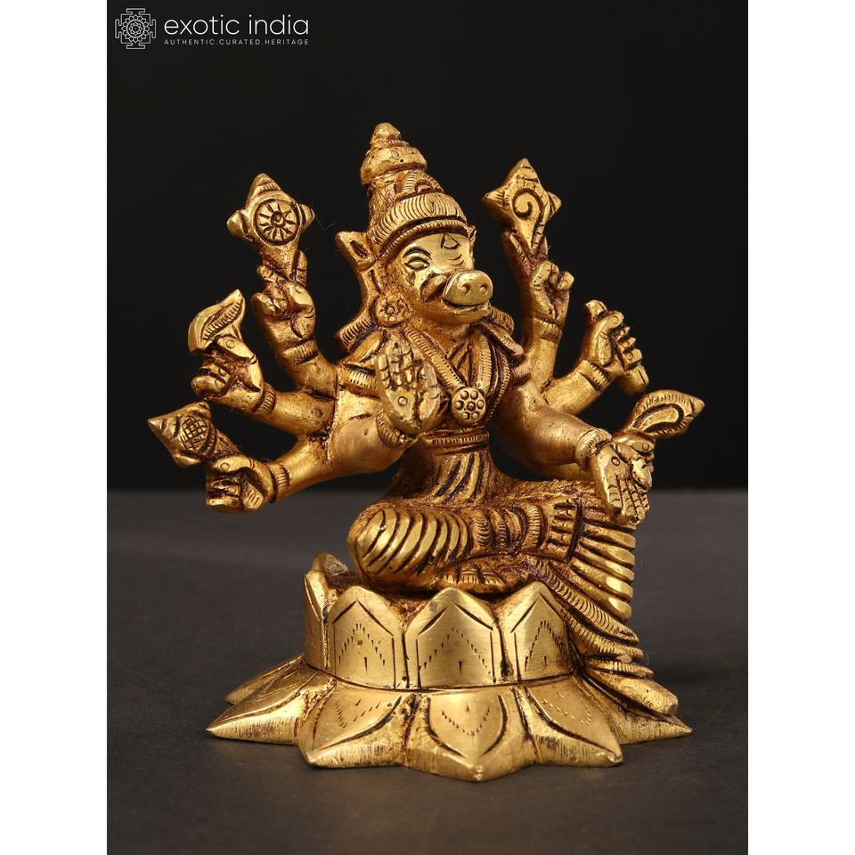 4-Inch Handmade Small Eight-Armed Goddess Varahi Brass Sculpture for Home Decor and Temple Made in India