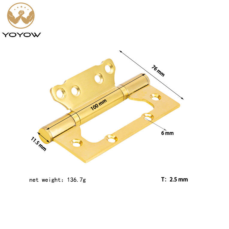 บานพับประตูเหล็กแบบปิด 4 นิ้ว สีทองขัดเงา ลูกปืน 2BB หนา 2.5 มม. อุปกรณ์ประตูไม้