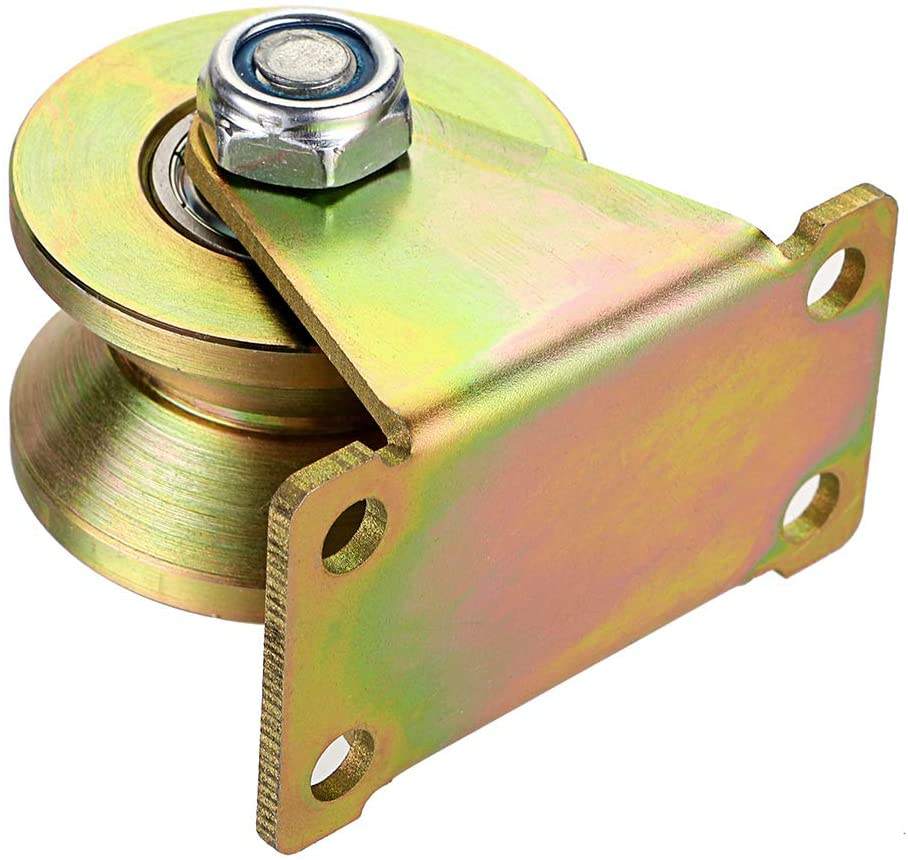 ล้อลูกรอกเหล็กชุบสังกะสี4นิ้วสีเหลือง V ร่องลูกปืนคู่คุณภาพสูงคู่มือประตูบานเลื่อนขนาดเล็กส่งตรงจากโรงงาน