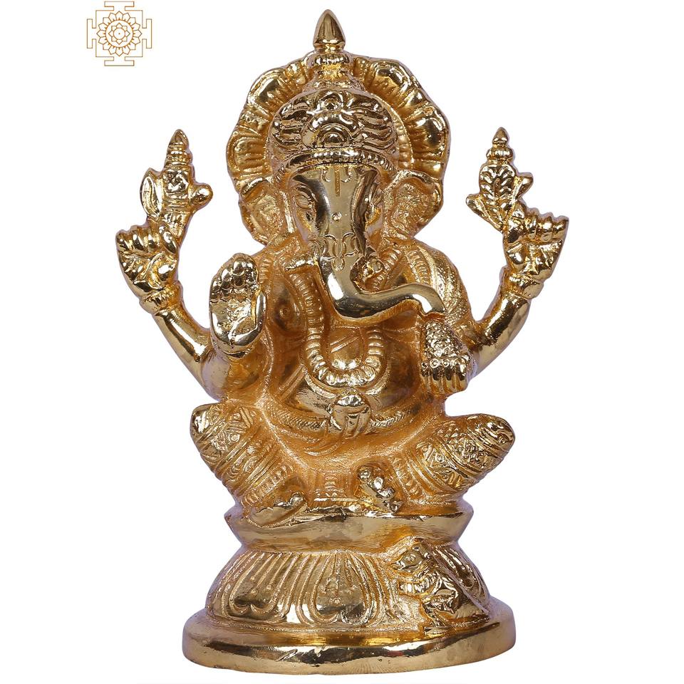 รูปปั้นพระพิฆเนศนั่ง งานฝีมือจากอินเดีย ขนาด 4 นิ้ว ชุบทองบนฐานทองเหลือง ผลิตภัณฑ์พรีเมียมจากอินเดีย