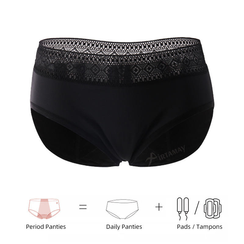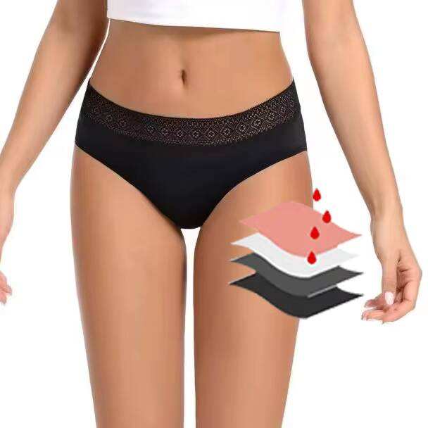 กางเกงในประจำเดือน 4 ชั้นสำหรับผู้หญิง กางเกงในลูกไม้ซึมซับได้ดี ป้องกันการรั่วซึมข้ามคืน กางเกงในประจำเดือนแบบ Culotte