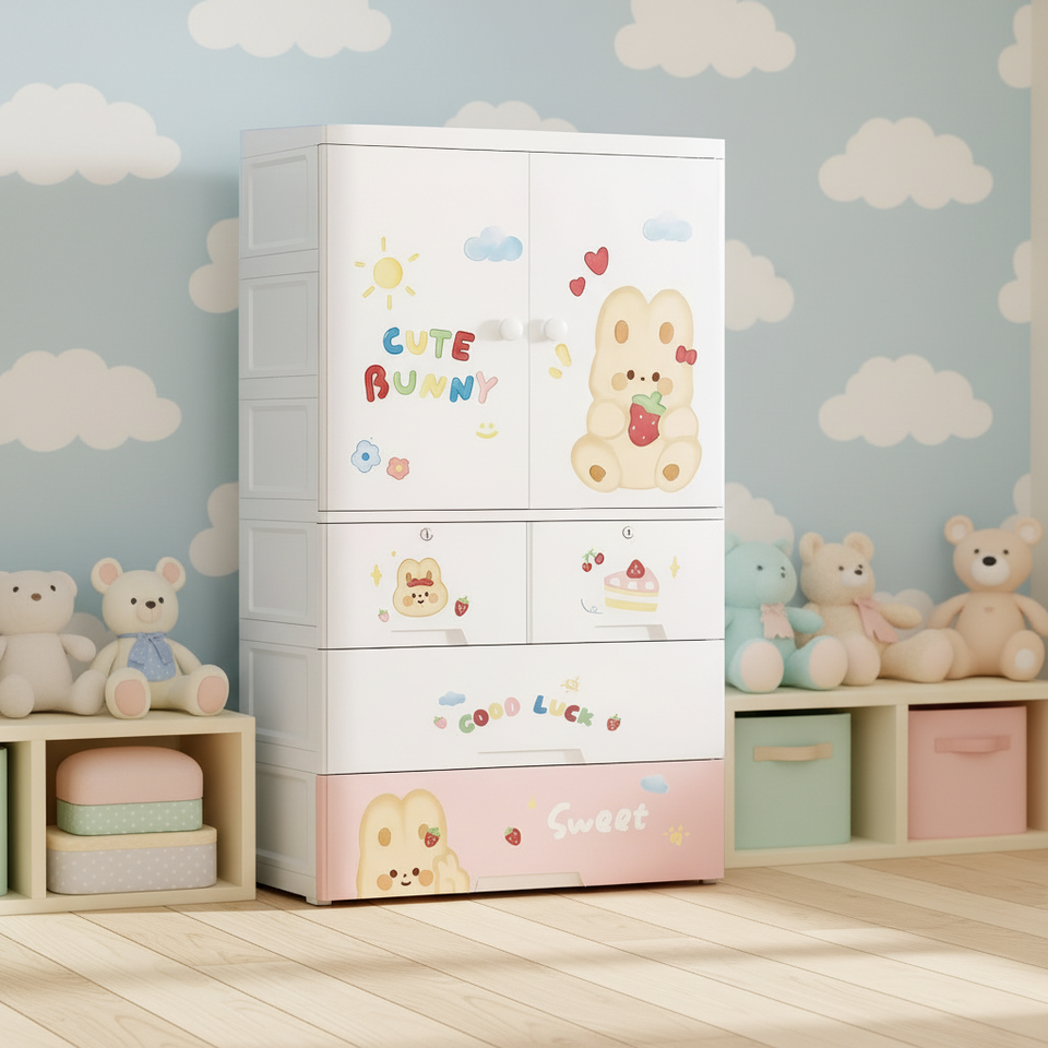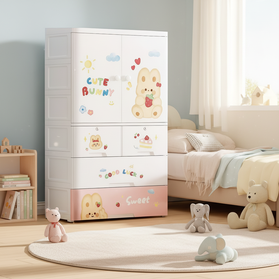 ตู้เสื้อผ้าเด็กแบบพกพา 4 ชั้น ลายการ์ตูน ทำจากพลาสติก สำหรับห้องนอน ตู้ลิ้นชักพลาสติกอเนกประสงค์ เป็นมิตรกับสิ่งแวดล้อม ช่วยประหยัดพื้นที่