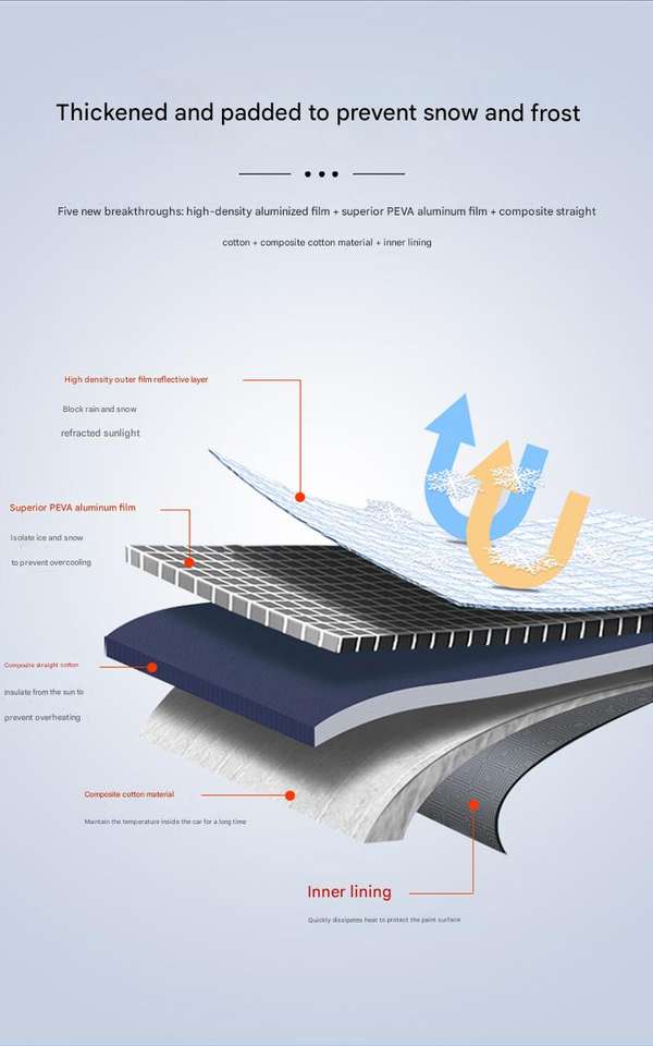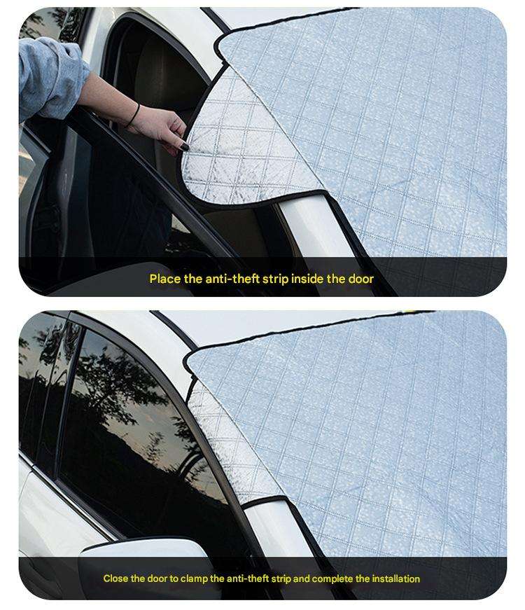 ผ้าคลุมกระจกหน้ารถแบบหนา 4 ชั้น ป้องกันรังสียูวี 95% ป้องกันรังสีอินฟราเรด 80% กันน้ำ ป้องกันหิมะ สำหรับรถ SUV รถบรรทุก รถเก๋ง-สไตล์สปอร์ตอเนกประสงค์